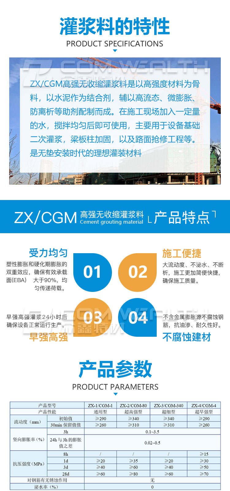 ZX-2/CGM-80高強無收縮灌漿料(超高強加固型)